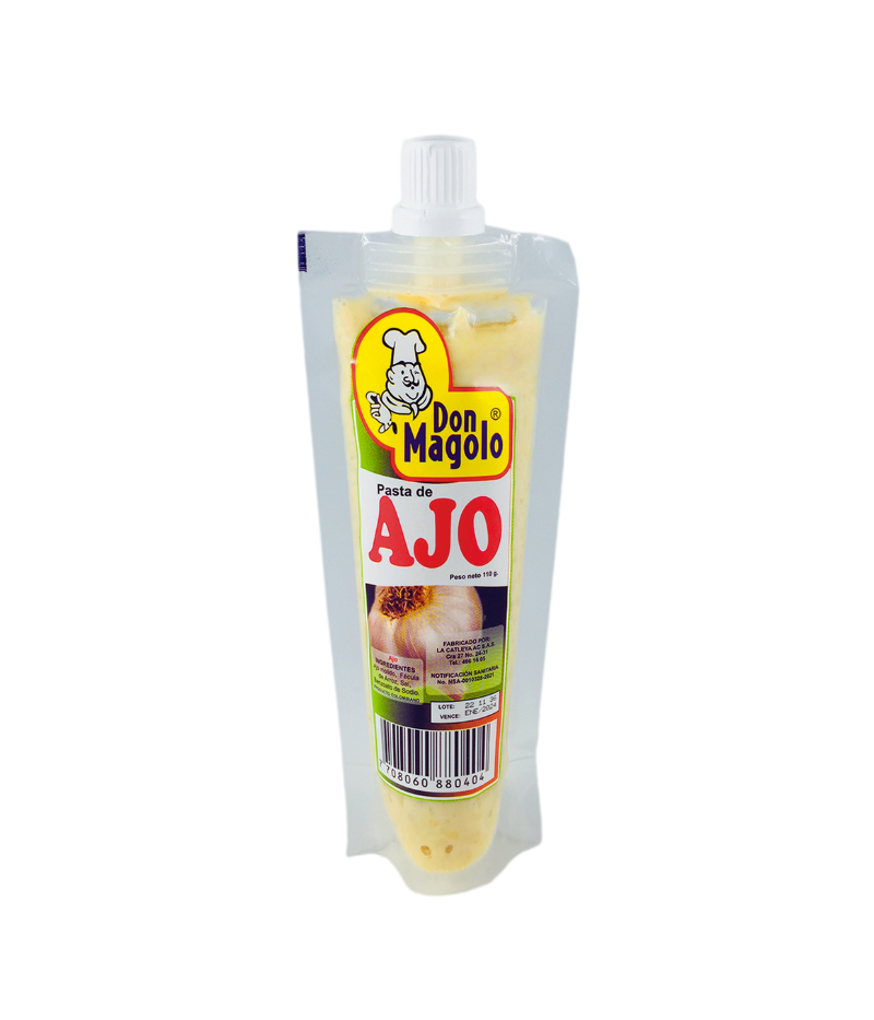 Potencia el sabor de tus comidas con la Pasta de Ajo Don Magolo 110g. Práctica, deliciosa y lista para usar en todas tus recetas.